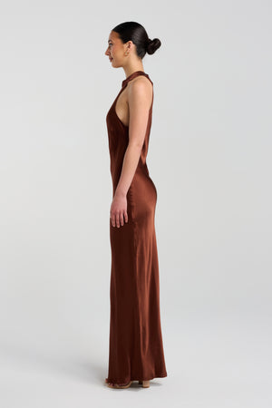 The Serena Dress combines modern sophistication with timeless appeal. Its elegant high neckline adds a touch of allure, while the bias cut allows the fabric to drape beautifully along the body’s natural curves. Effortlessly refined and endlessly flattering, this dress captures the perfect balance of class and contemporary style