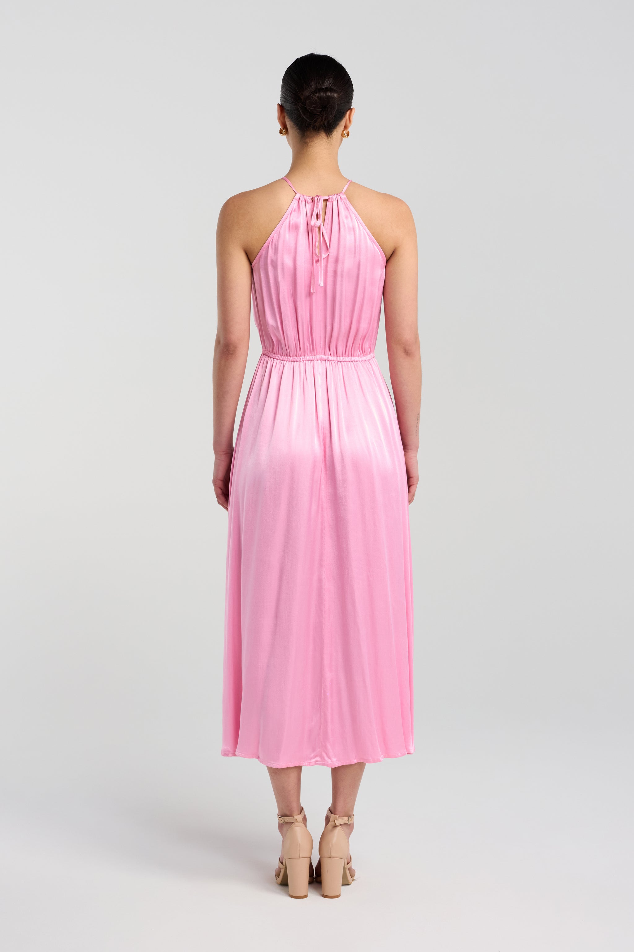 The Tokyo Dress is the perfect balance of comfort and elegance. Featuring an elasticated waist that subtly defines the silhouette, this midi-length design offers a universally flattering fit and effortless wearability. With its adjustable neck tie and front keyhole detail, it’s a modern, versatile style suited for every occasion — from relaxed celebrations to elevated everyday moments